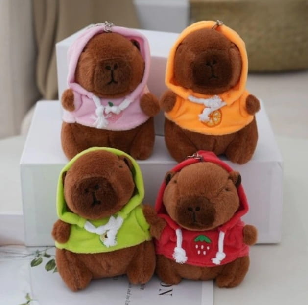 Szukasz czegoś naprawdę wyjątkowego do plecaka, torby albo na klucze? Ten breloczek to nie tylko urocza maskotka, ale też mini ikona stylu! Kapibara w mięciutkiej bluzie owocowej przyciąga spojrzenia i dodaje charakteru każdej stylizacji.