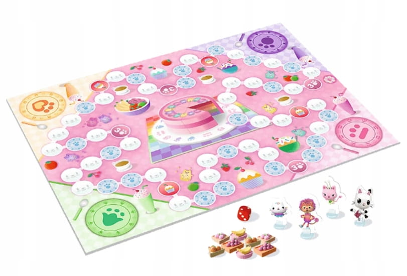 Rozsiądźcie się przy stole i zacznijcie zbieranie ciasteczek! Każdy gracz wybiera swojego kotka i przypisany mu talerzyk, a następnie wyrusza w trasę wokół stołu. W swojej turze rzucacie kostką i przesuwacie pionek w wybranym na początku kierunku, który obowiązuje do końca gry.