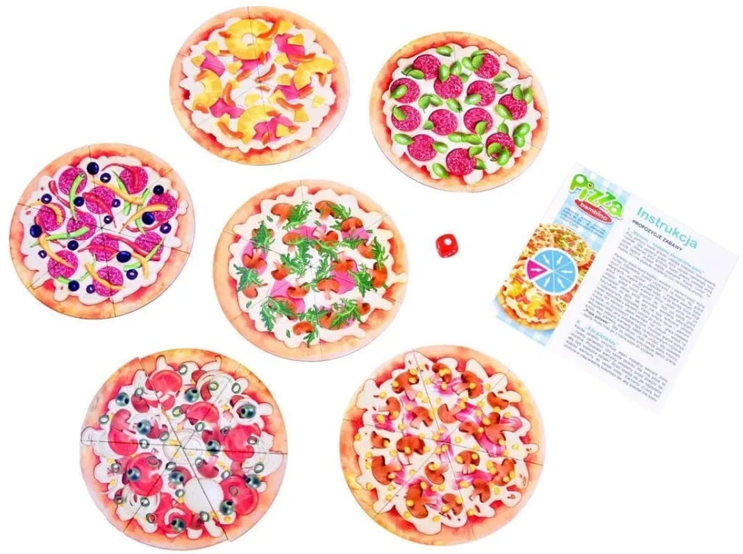 Zadaniem graczy jest wybrać 6 trójkątnych elementów pizzy, z których powstanie pizza jednego rodzaju.