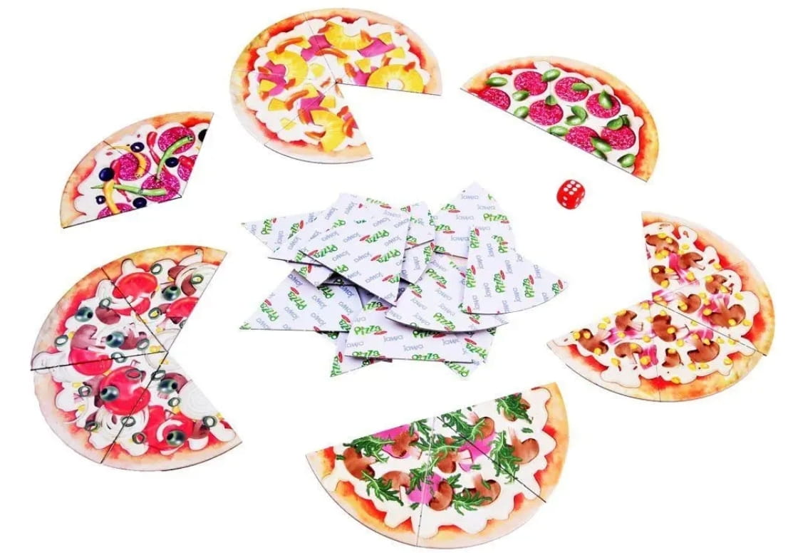 Gra to 36 trójkątnych elementów, które zawierają charakterystyczne składniki dla sześciu różnych rodzajów pizzy: Americana, Pepperoni, Hawajska, Capricciosa, Vegetariana i Margherita.