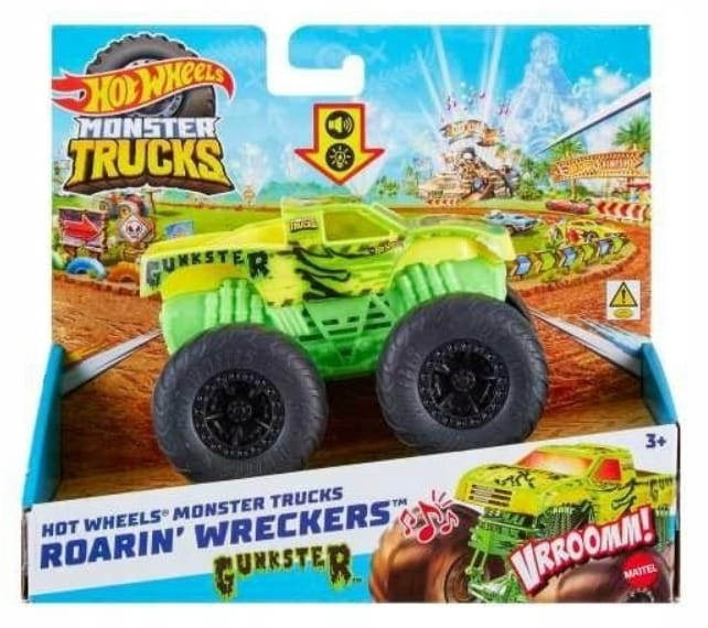 Ta kolekcja pojazdów Hot Wheels(R) Monster Trucks Roarin Wreckers dostarcza niezapomnianych emocji z zabawy w robienie kraks i popisy kaskaderskie, a do tego ma efektowne światełka i dźwięki zwiększające realizm.