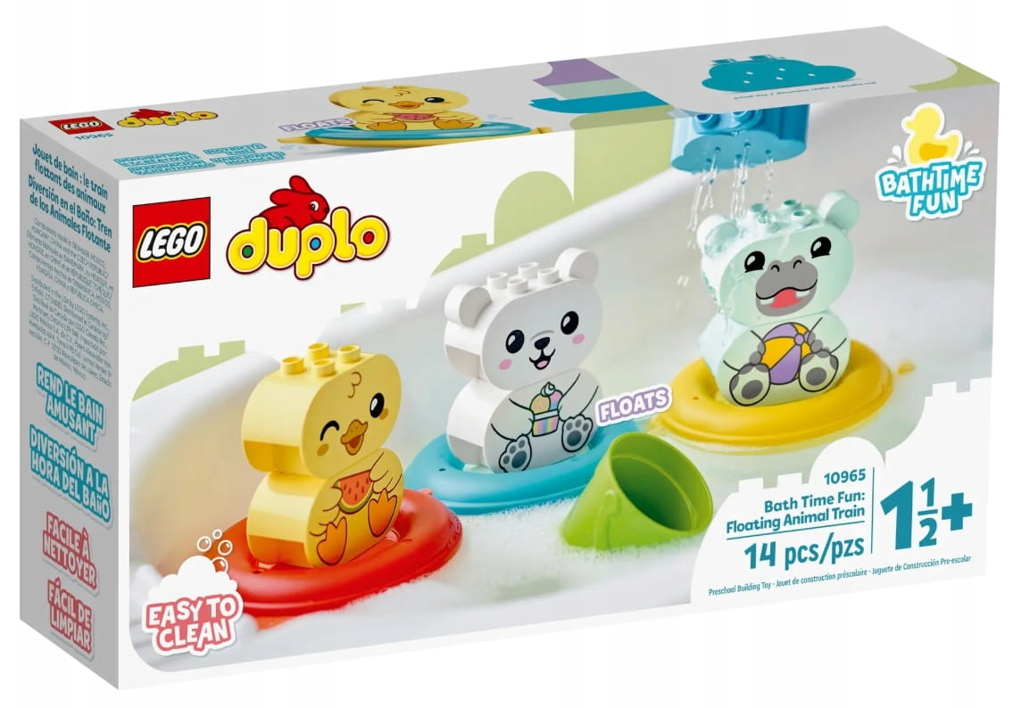 LEGO® DUPLO® Moja pierwsza zabawa w kąpieli: pływający pociąg ze zwierzątkami (10965) to łatwa w czyszczeniu zabawka edukacyjna dla przedszkolaków w wieku od 18 miesięcy.