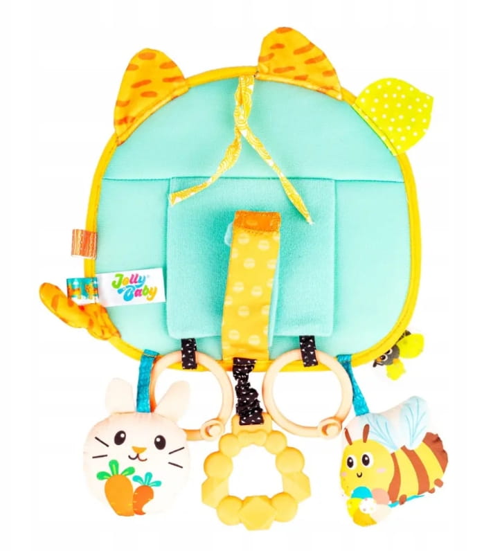 Materiały, z których wykonany został kotek i przyczepione do niego elementy odznaczają się zróżnicowanymi fakturami, przez co eksplorujący je maluch może rozwijać zdolności poznawcze, ucząc się odkrywać świat za pomocą zmysłów.