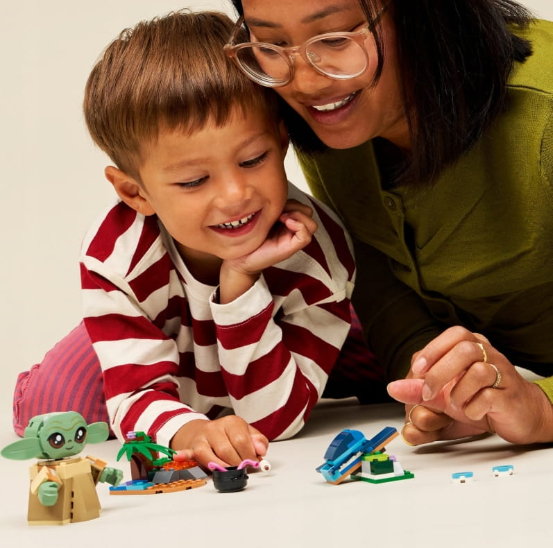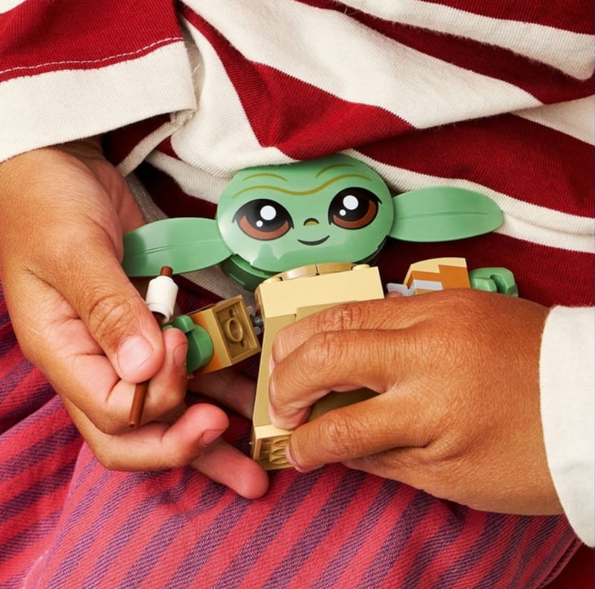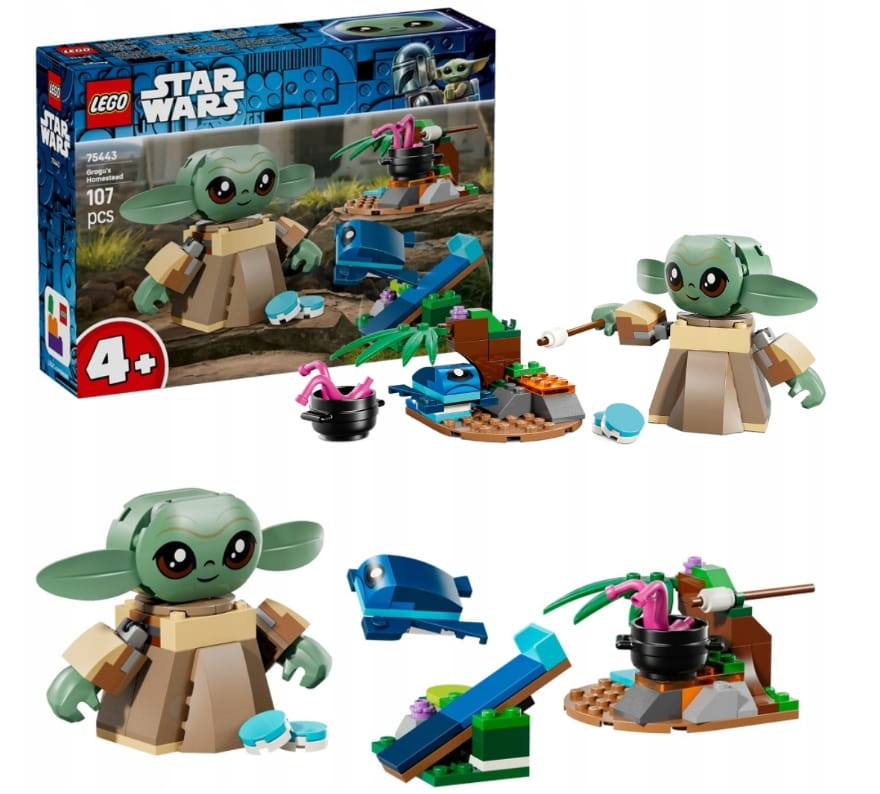 Ta zabawka konstrukcyjna dla dzieci zawiera łatwą do zbudowania, ruchomą figurkę Grogu, żabę z Sorgan, dwa minimodele oraz autentycznie odwzorowane akcesoria.