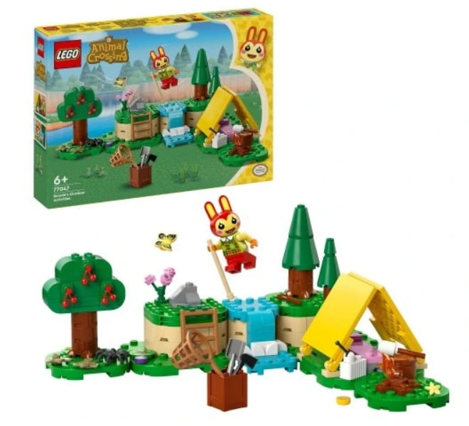 Dzięki zestawowi LEGO 77047 Animal Crossing Zabawy na świeżym powietrzu Bunnie sześciolatki i starsze dzieci zbudują kemping z gry Animal Crossing.
