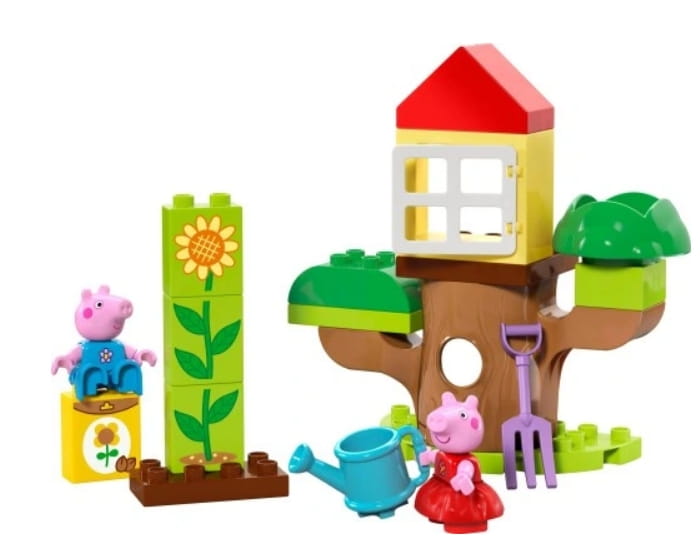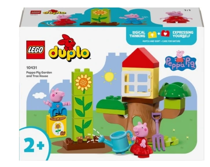 Zachęć dzieci w wieku od dwóch lat do odkrywania świata poza domem dzięki zestawowi LEGO® DUPLO® Ogród i domek na drzewie Peppy (10431).