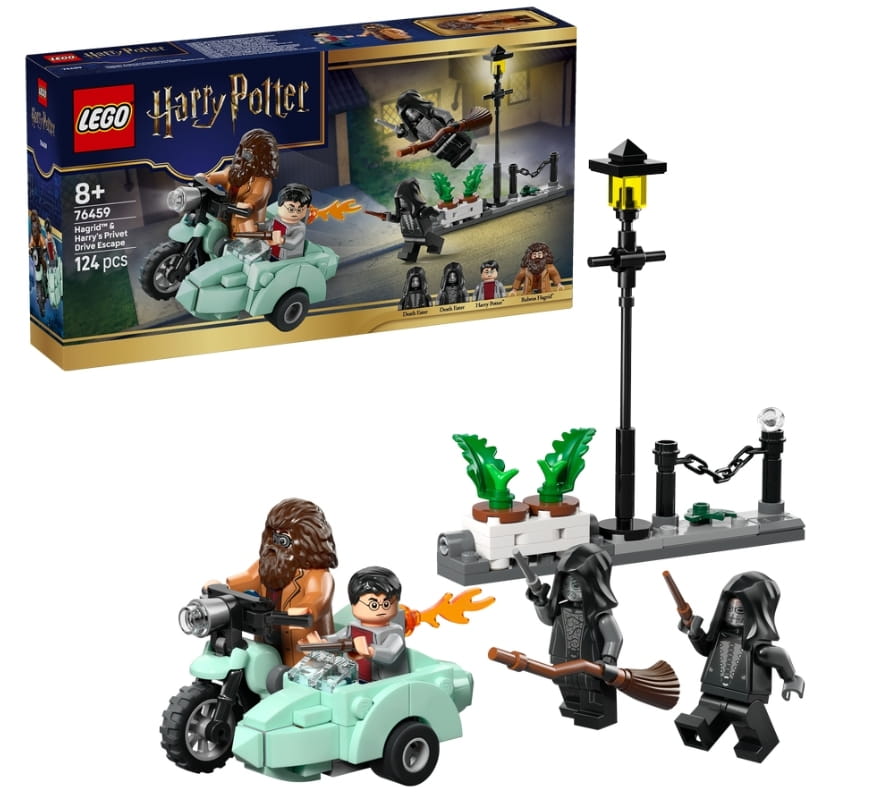 Zestaw zawiera pierwszy model latającego motocykla Hagrida w skali minifigurek LEGO, a także cztery minifigurki LEGO Harry Potter oraz minimodel Privet Drive, które zainspirują do kreatywnej zabawy.