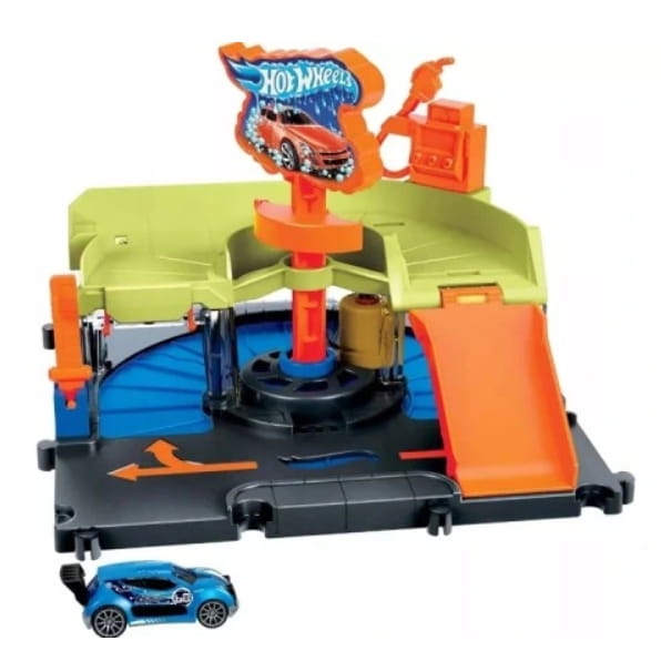 Rajdowa Myjnia Hot Wheels™ City to idealne miejsce na umycie auta po wyczerpujących zawodach, z mnóstwem wyjątkowych realistycznych funkcji.