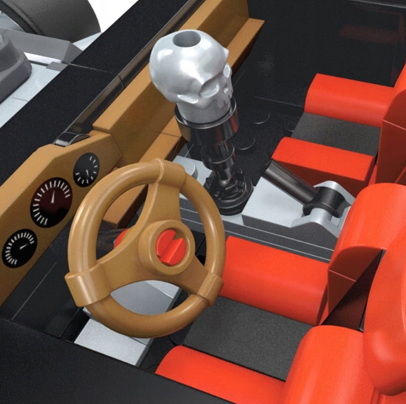 - atrakcyjne elementy - wiernie odwzorowane wnętrze, obracające się koła, zdejmowany dach i maska