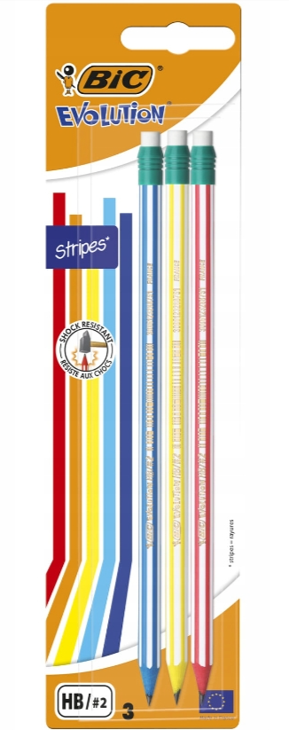 Ołówek Evolution Stripes 646 Hb Z Gumką Blister 3szt Bic