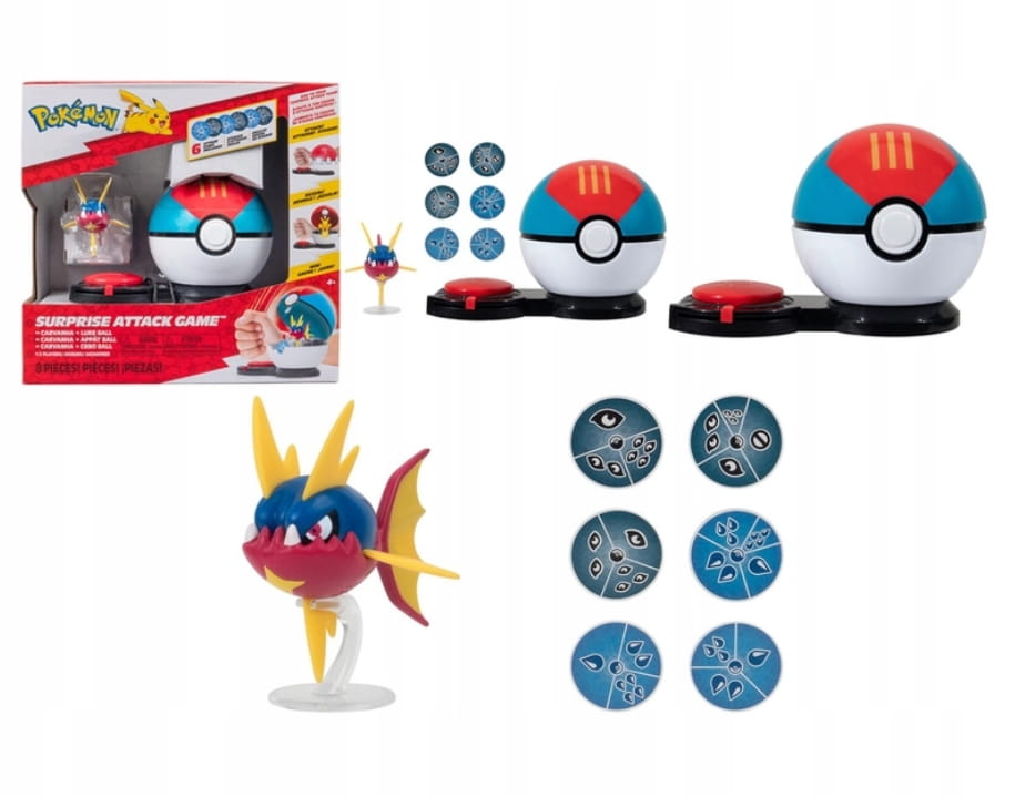POKEMON Gra Surprise Attack 1-pak Carvanha, Lure Ball atakujące dyski
