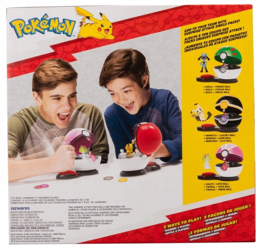 Gra składa się z Poke Balla ustawionego na dwuczęściowej podstawce - aby rozpocząć zabawę, umieść w Poke Ballu figurkę oraz dysk bitewny, po czym naciśnij czerwony przycisk, by wprawić całą konstrukcję w obrotowy ruch!