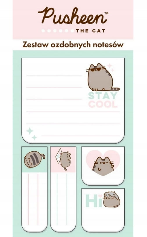 PUSHEEN karteczki notesy samoprzylepne 5 szt INDEKSUJĄCE