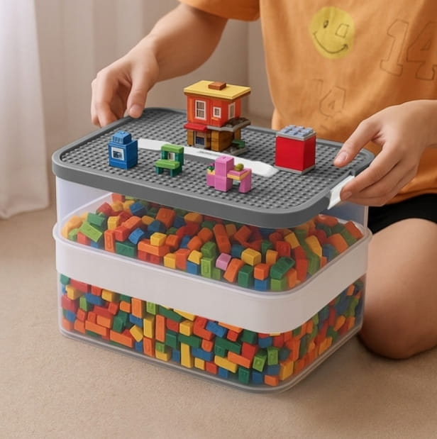 ✔️ zgodny z europejskimi normami - 2 piętrowy pojemnik na klocki został przetestowany na zgodność z europejskimi normami, dlatego możesz mieć pewność, że jest bezpieczny!
