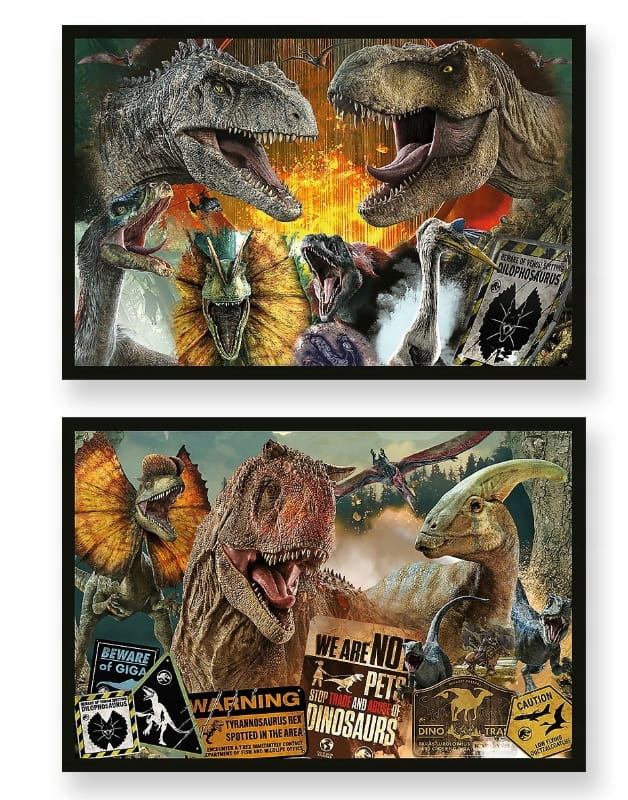 Prehistoryczny świat to puzzle przedstawiające przygody dinozaurów. Każda z układanek pozwoli stworzyć obrazek o wymiarach 410x275 mm.