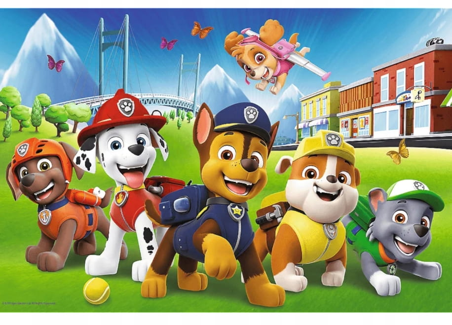 Przyjaciele gotowi do akcji to puzzle składające się z 60 elementów, zaprojektowane specjalnie z myślą o małych fanach dzielnych psiaków.