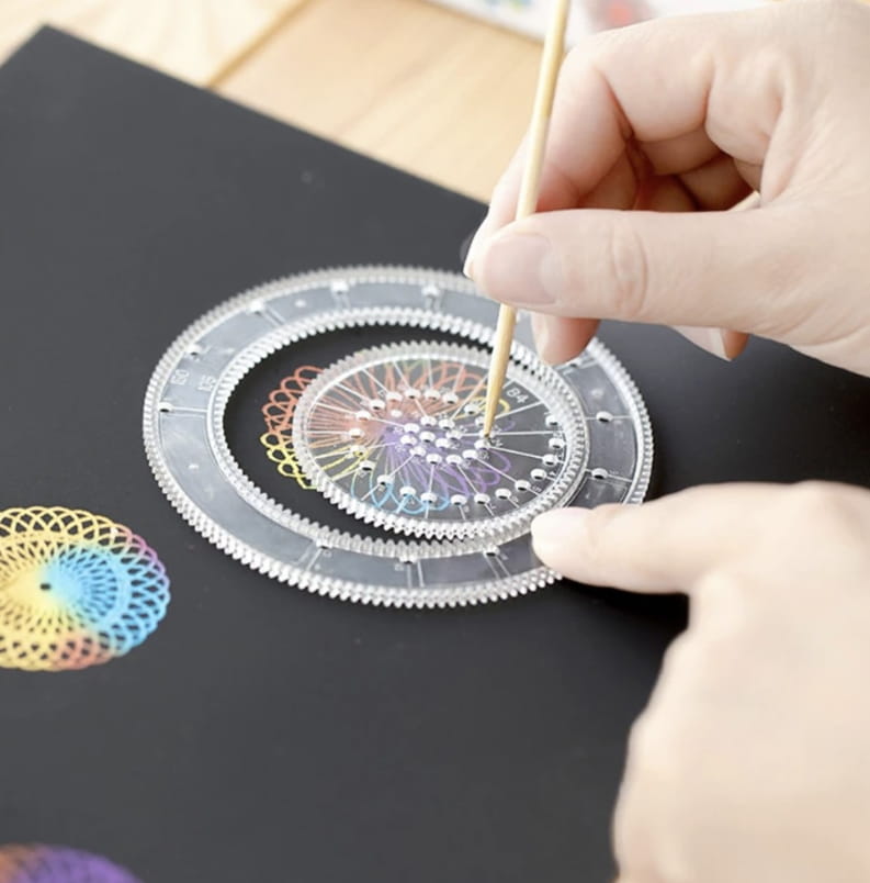Spirograf to idealna zabawka edukacyjna dla dzieci w wieku szkolnym. Umożliwia rozwijanie wyobraźni i zdolności manualnych, jednocześnie wprowadzając dzieci w świat matematyki i geometrii w sposób zabawny i kreatywny. Spirograf może być używany zarówno w domu, jak i w szkole podczas zajęć plastycznych lub matematycznych, pomagając uczniom zrozumieć zasady rysowania symetrycznych wzorów. Zestaw spirograf to doskonała forma wspólnej zabawy rodziców z dziećmi, jest także świetnym narzędziem dla dorosłych, którzy pasjonują się sztuką geometryczną lub szukają relaksującej aktywności. W rysowaniu za pomocą spirografu mogą brać udział osoby rozwijające zdolności manualne i koordynację ruchową, a także osoby z zaburzeniami koncentracji, którym taka aktywność pomoże się wyciszyć i skupić.