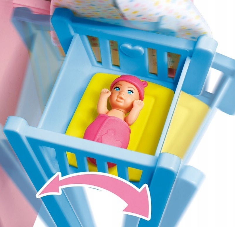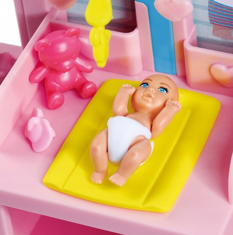 - Wymiary produktu: wysokość lalki - 29cm; wielkość bobasa - 4cm; wielkość pokoiku - 24 x 30 (cm)