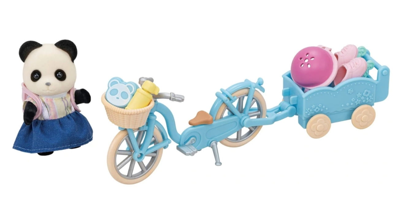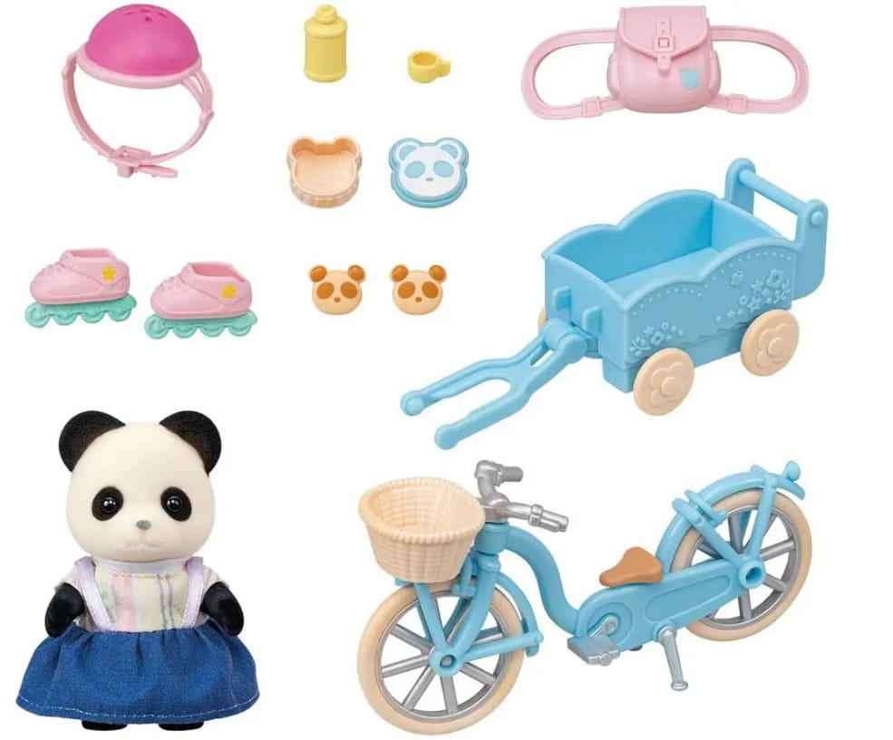 Zestaw Wycieczka rowerowa misia Pandy Sylvanian Families zawiera figurkę uroczej dziewczynki z rodziny pandy z rowerem i akcesoriami.
