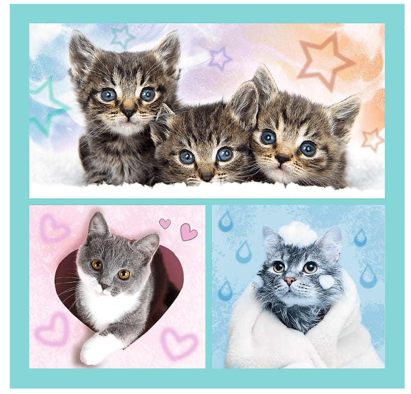 Zestaw puzzli 3w1 "Słodkie kotki" Trefl składa się z trzech niezależnych układanek, które zostały specjalnie zaprojektowane dla dzieci.