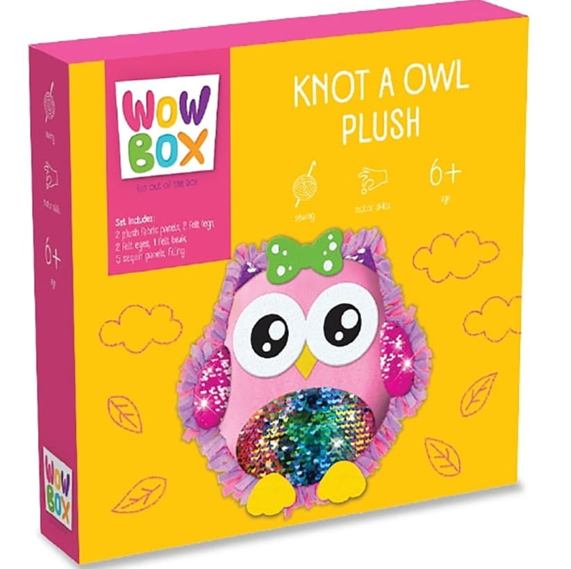 Wow Box Poduszka DIY Sowa to kreatywny zestaw dla małych artystów, którzy chcą stworzyć własną maskotkę bez użycia igieł i nici. Ta urocza sówka powstaje poprzez proste zawiązywanie supełków - wystarczy odrobina cierpliwości i wyobraźni, aby krok po kroku wyczarować wyjątkową, mięciutką przytulankę!